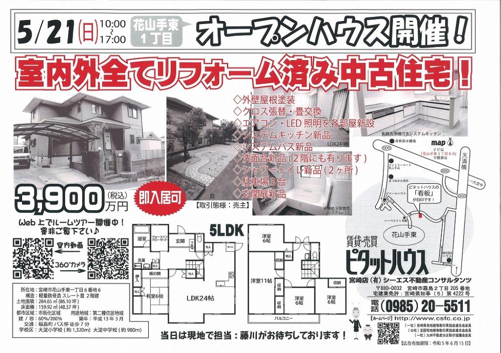 5月20日(土)「宮崎市花山手東1丁目中古住宅」の折込チラシが入ります2023-05-18