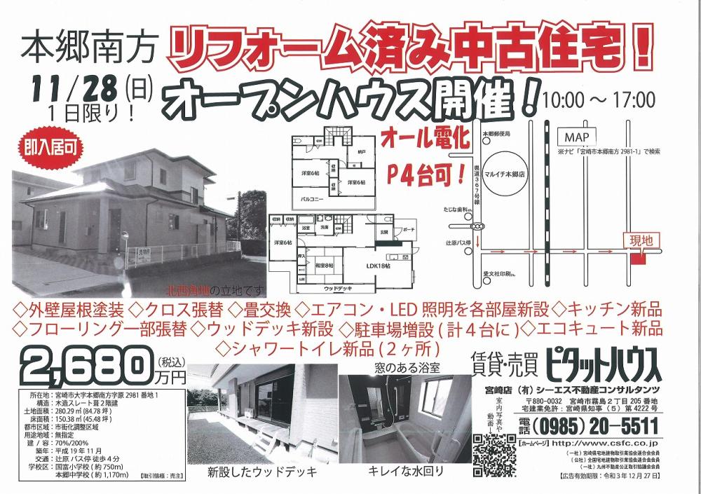 11月27日(土)「宮崎市本郷南方中古住宅」の折込チラシが入ります2021-11-24