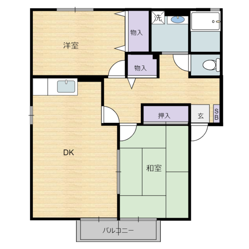 南向きで日当たり良好の2LDK