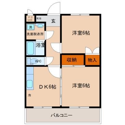 間取り 2DK ( DK6畳/洋室6畳/洋室6畳 )